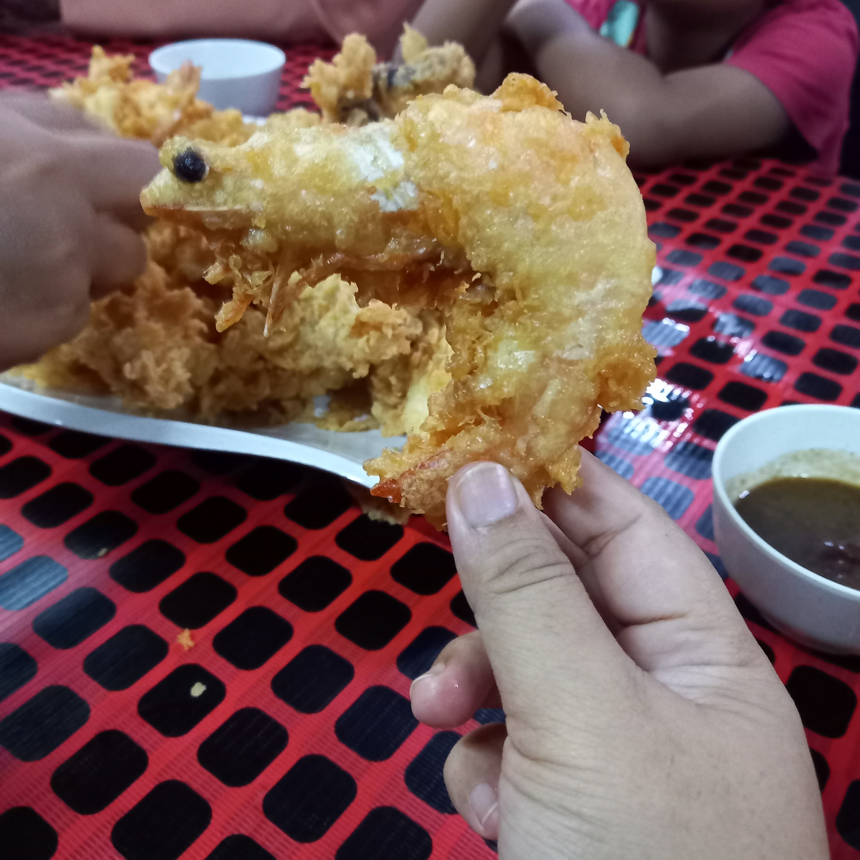 Sotong celup tepung dan udang celup tepung. Ni makan masa kat kampung haritu. Atok mintak separuh².